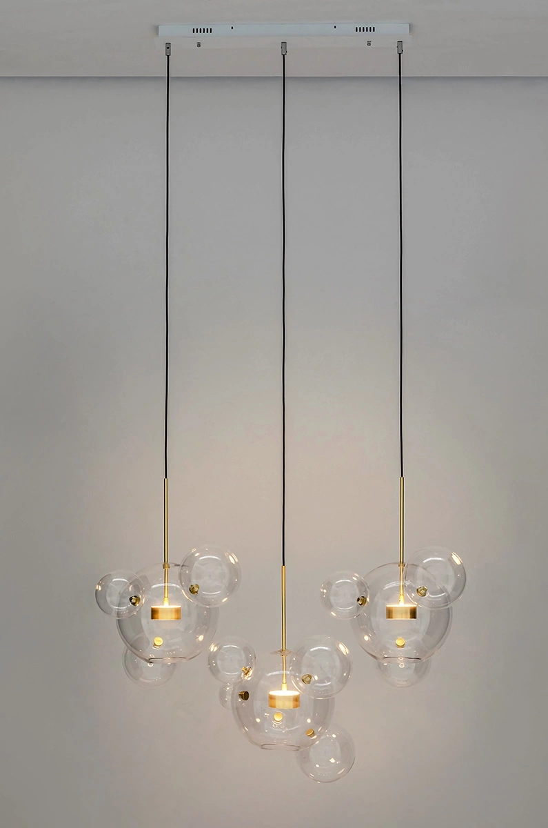 są złote pręty zakończone źródłem światła LED. Całość przypomina połączone bańki mydlane. Snop światła skierowany jest zarówno do dołu