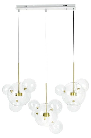 są złote pręty zakończone źródłem światła LED. Całość przypomina połączone bańki mydlane. Snop światła skierowany jest zarówno do dołu