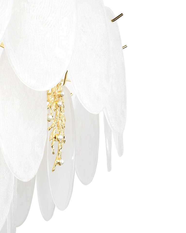 MOOSEE lampa wisząca CLARA 80 złota. Wyjątkowa forma, która łączy w sobie elegancję z dekoracyjnym akcentem. Wykonana z połączenia metalu i szkła, gwarantuje trwałość przy zachowaniu wyszukanego stylu. Nietuzinkowy i artystyczny kształt wprowadza do wnętrza niepowtarzalną atmosferę. Idealnie sprawdzi się w salonach, jadalniach, sypialniach, stylowych biurach oraz luksusowych hotelach. Doskonała do aranżacji w stylu glamour, skandynawskim, modern classic czy art déco. Odkryj całą kolekcję Clara i wybierz model, który wniesie do Twojego wnętrza wyjątkowy charakter. Światło: 15 x E14 max. 40 W (brak w zestawie) Oprawa: wys. 45 cm / szer. 80 cm / gł. 80 cm Mocowanie: szer. 12 cm / dł. 7 cm Przewód: 200 cm Waga netto: 15 kg Wymiary opakowania: 96 cm / 96 cm / 35 cm.