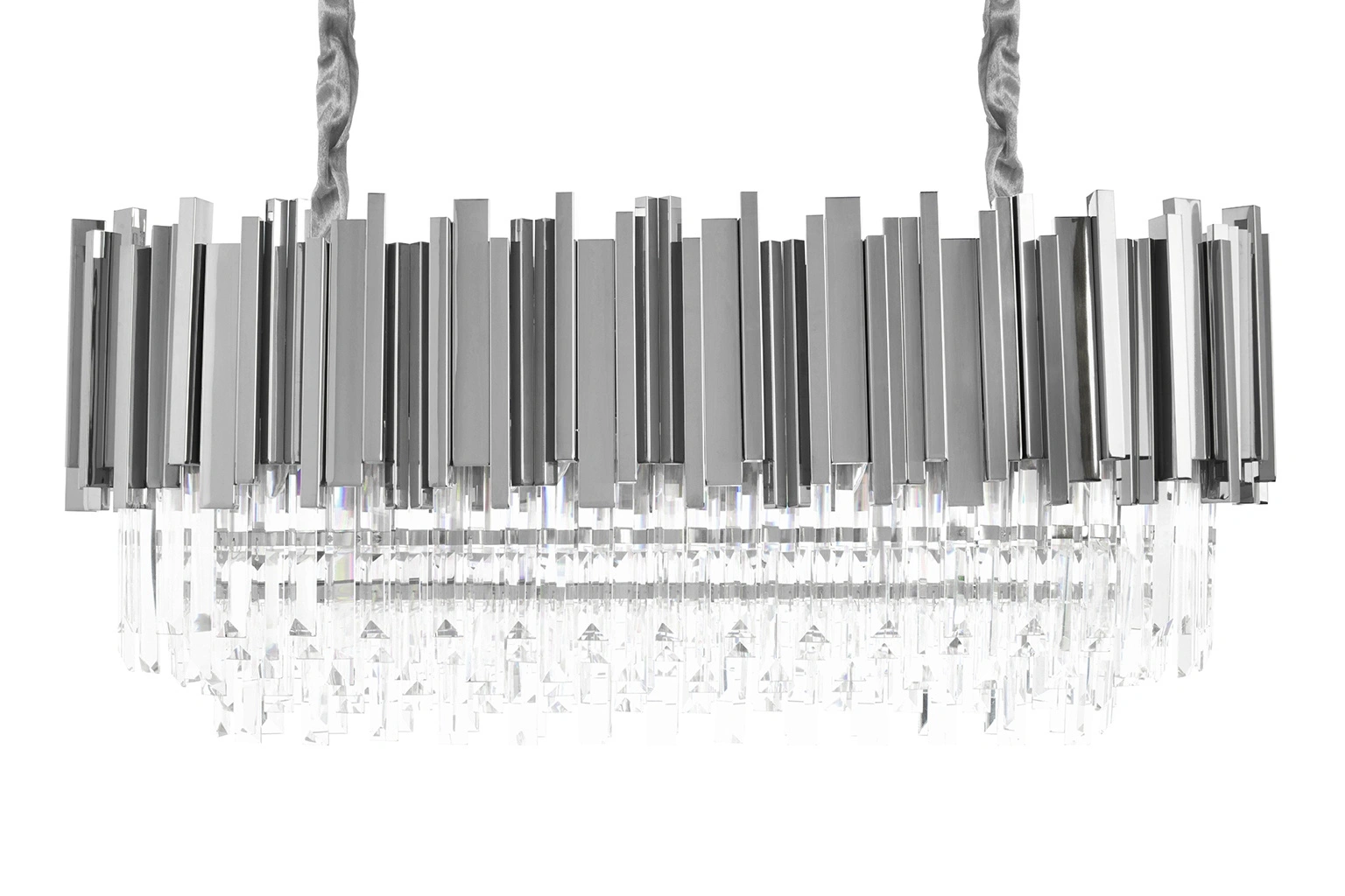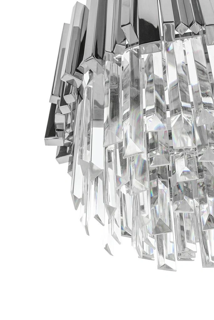 Owalny kształt lampy, połączenie srebra i szklanych kryształków zapewniają optymalne oświetlenie pomieszczenia.
