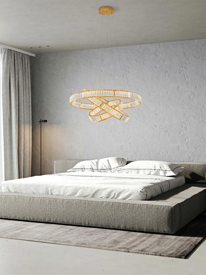 Kryształowe szkło zamocowane po obu stronach obręczy w niezwykły sposób rozprasza strumień światła.