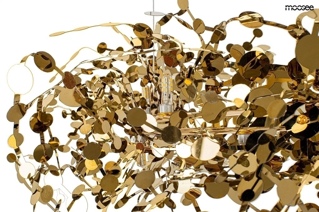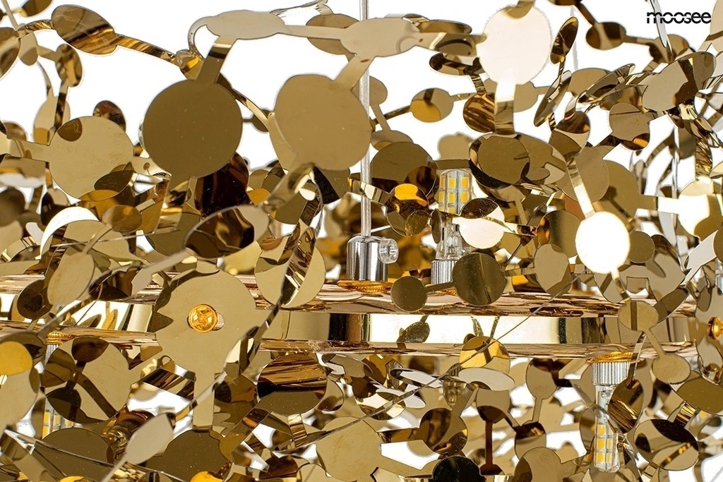Konstrukcję lampy wykonano ze stali w błyszczącym złotym odcieniu.