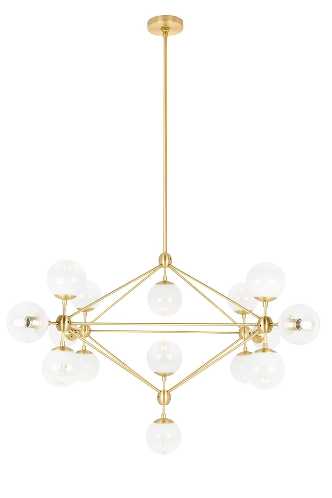 Całość dopełnia 15 okrągłych kloszy wykonanych oszronionego szkła.