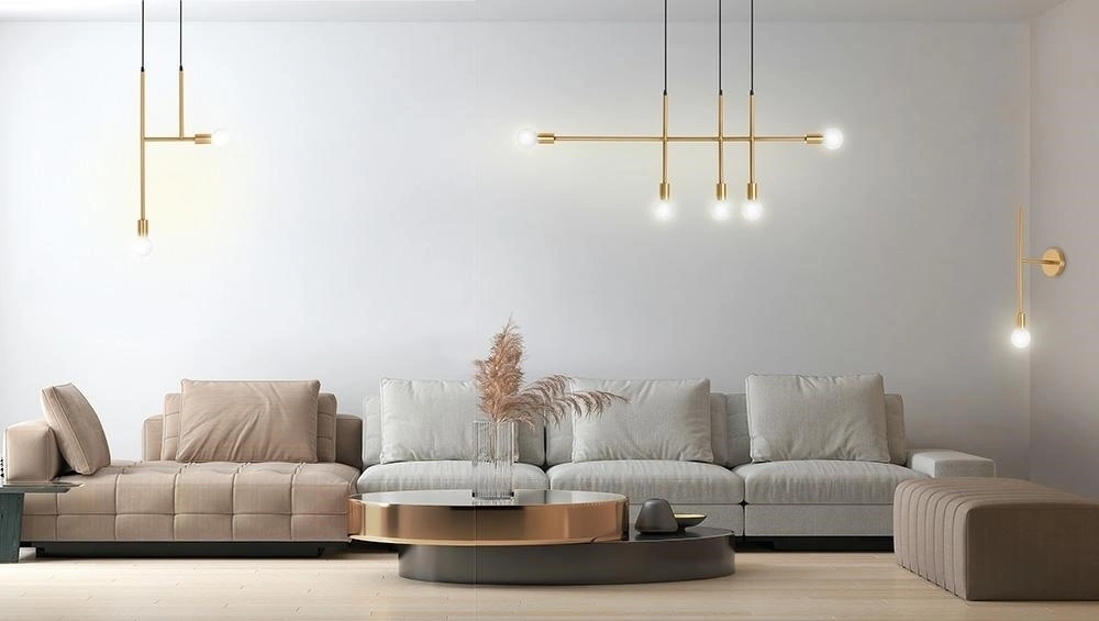 Dymione klosze o industrialnym stylu zamontowano w przeciwnych kierunkach, dla zwiększenia efektu wizualnego.