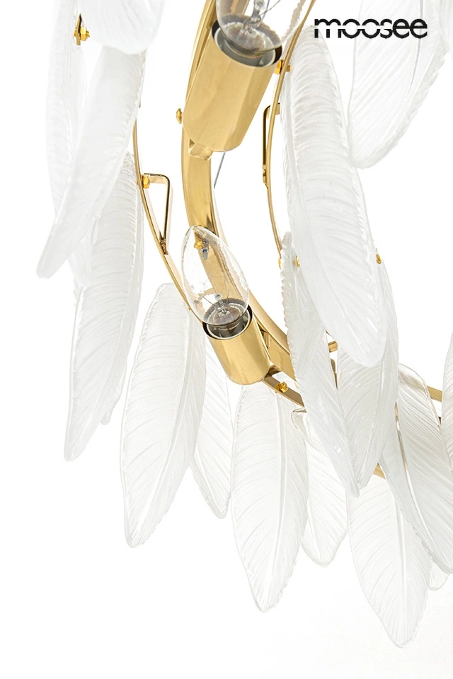 Subtelnego uroku dodają mleczne szklane klosze przypominające liście.