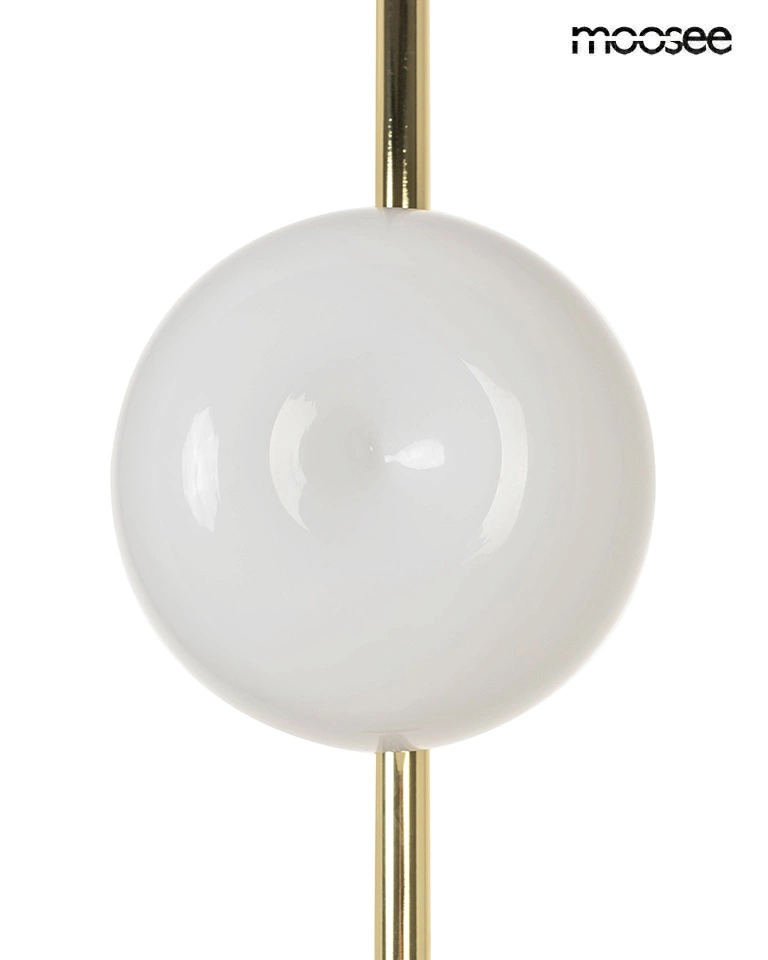 Minimalistyczny design i złote wykończenie wnosi do wnętrza luksusowy akcent, który doskonale współgra z różnorodnymi aranżacjami – od klasycznych po współczesne. Klosze w formie kul z mlecznego szkła równomiernie rozpraszają światło, tworząc przytulną atmosferę. Idealnie sprawdzi się w salonie, jadalni lub sypialni.