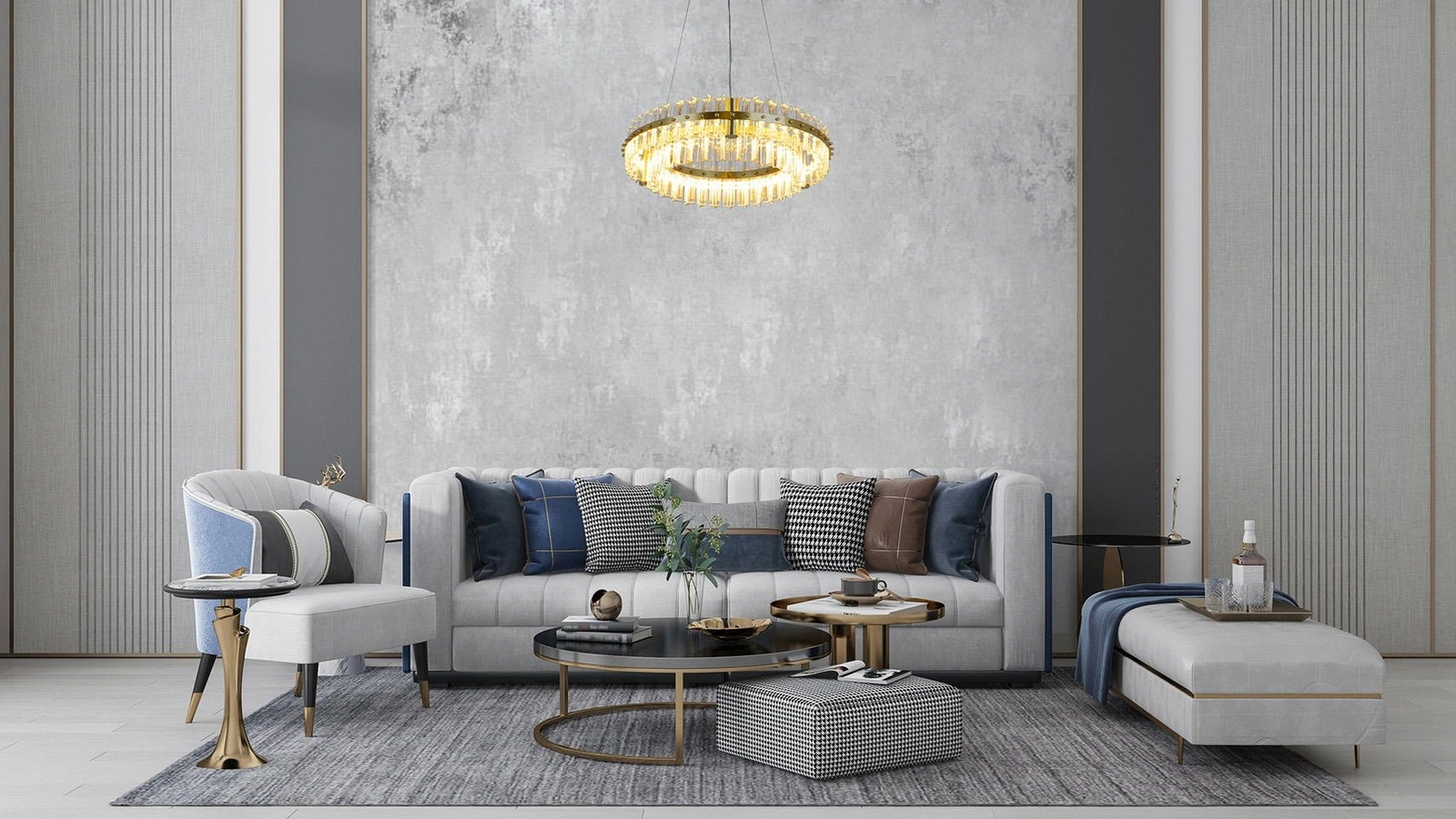 MOOSEE lampa wisząca SATURNUS 47 DUO złota - LED, kryształ, stal szczotkowana
