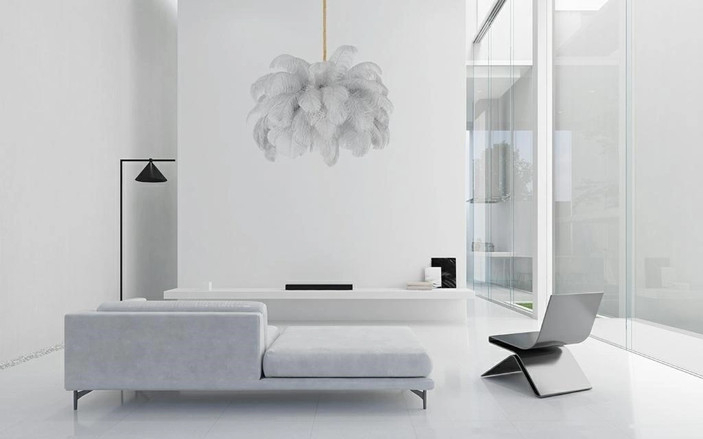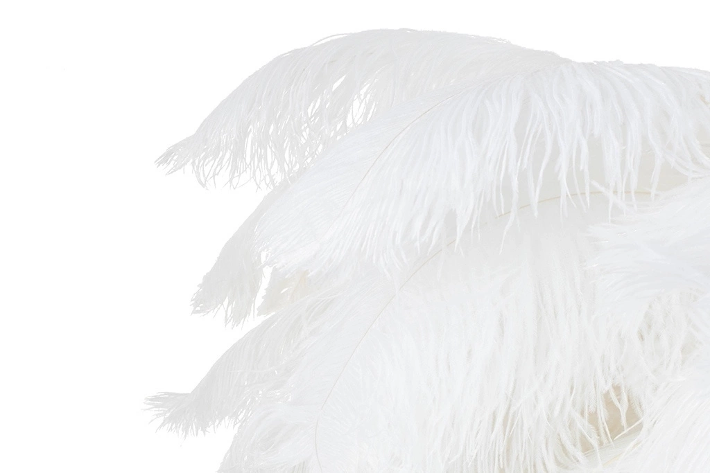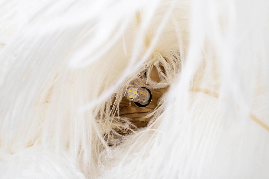 Klosz tworzy 80 sztuk gęsto ułożonych, naturalnych strusich piór o długości 55-60 cm, którymi możemy regulować wysokość