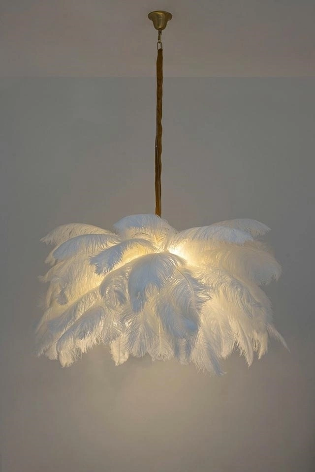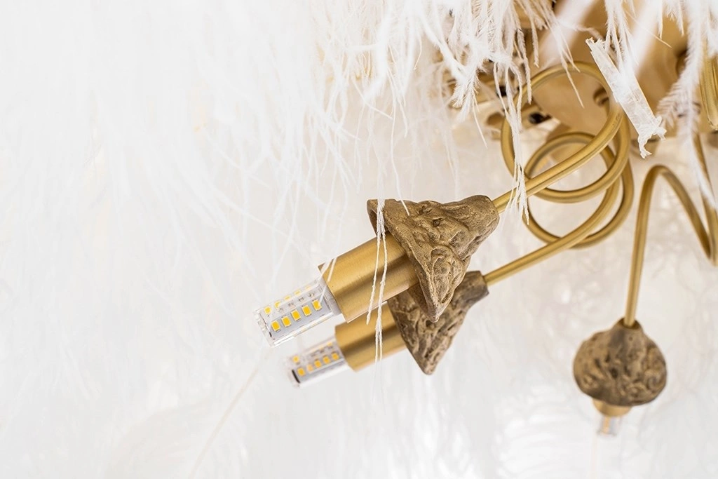 MOOSEE lampa wisząca TIFFANY 135 biała mosiądz / naturalne pióra