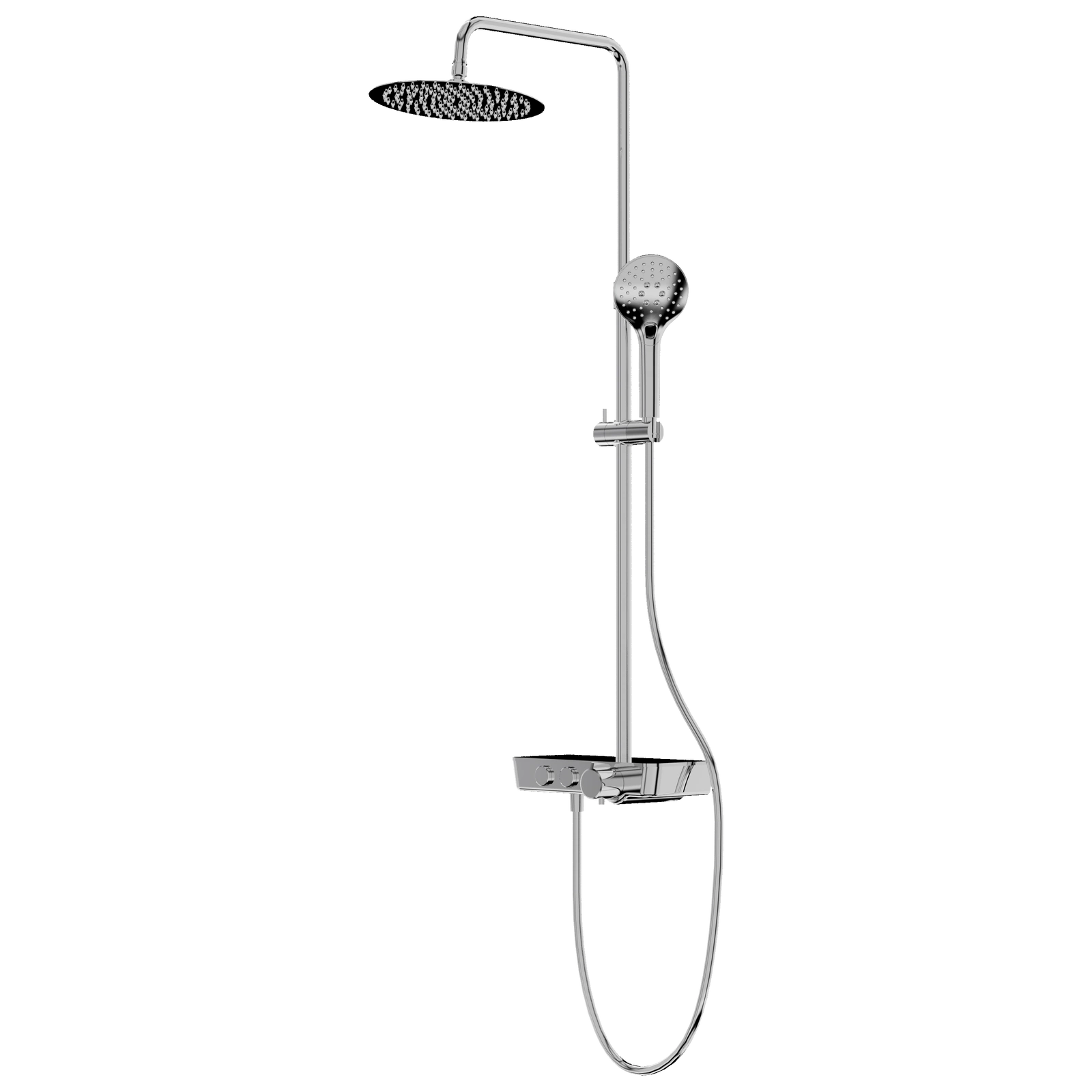 Dzięki wyjątkowemu designowi, natynkowy zestaw prysznicowy ze szklaną półką Cetus Chrome pozwala na efektywne wykorzystanie przestrzeni w łazience. Solidna półka zapewnia miejsce do przechowywania szamponów, żeli, mydeł czy innych kosmetyków, co sprawia, że są one zawsze pod ręką podczas kąpieli.