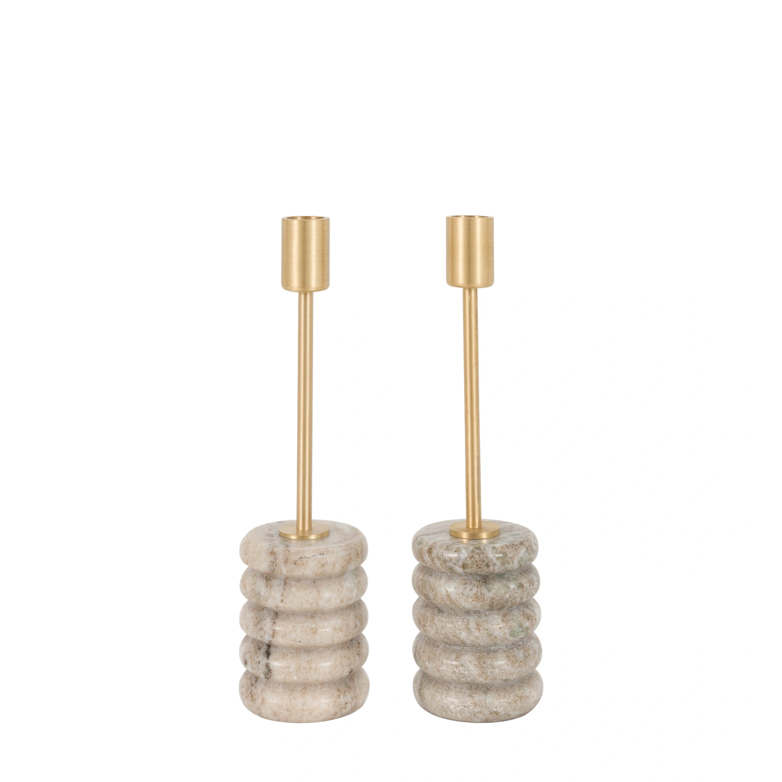 Novi Gold Candle Stick S/2 Beige Marble 66x66x255m