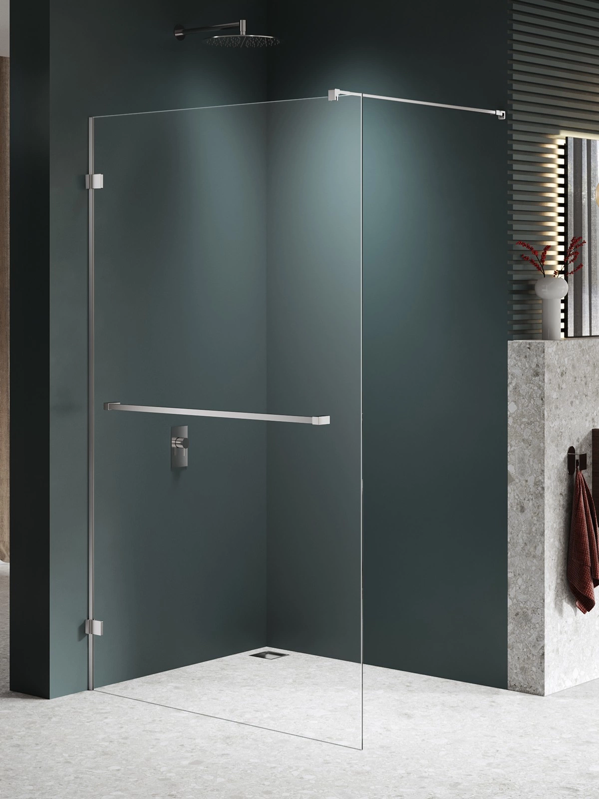 NZ4 Kabina prysznicowa AVEXA NICKEL BRUSHED walk-in 50x200 szkło czyste 6mm Active Shield 2.0 WIESZAK