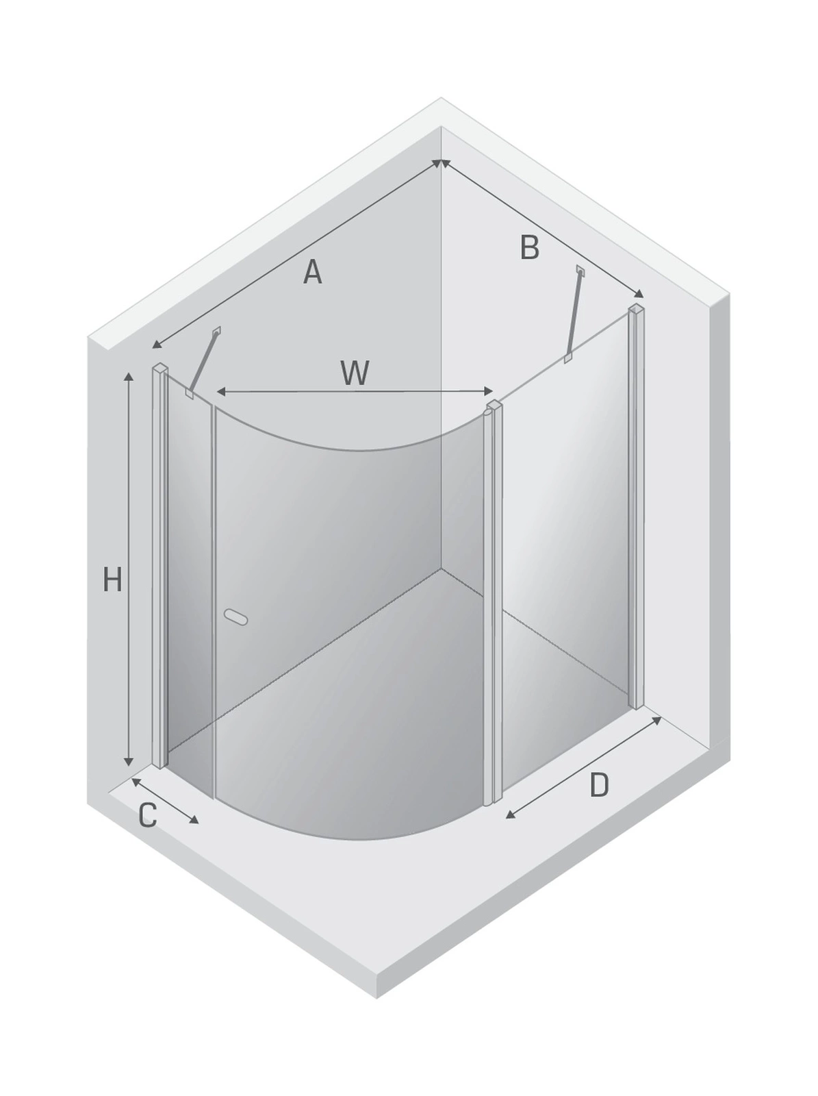 NZ4 Kabina prysznicowa NEW SOLEO 1D P półokrągła asymetryczna 80x90x195 szkło czyste 6mm Active Shield 2.0 2.0
