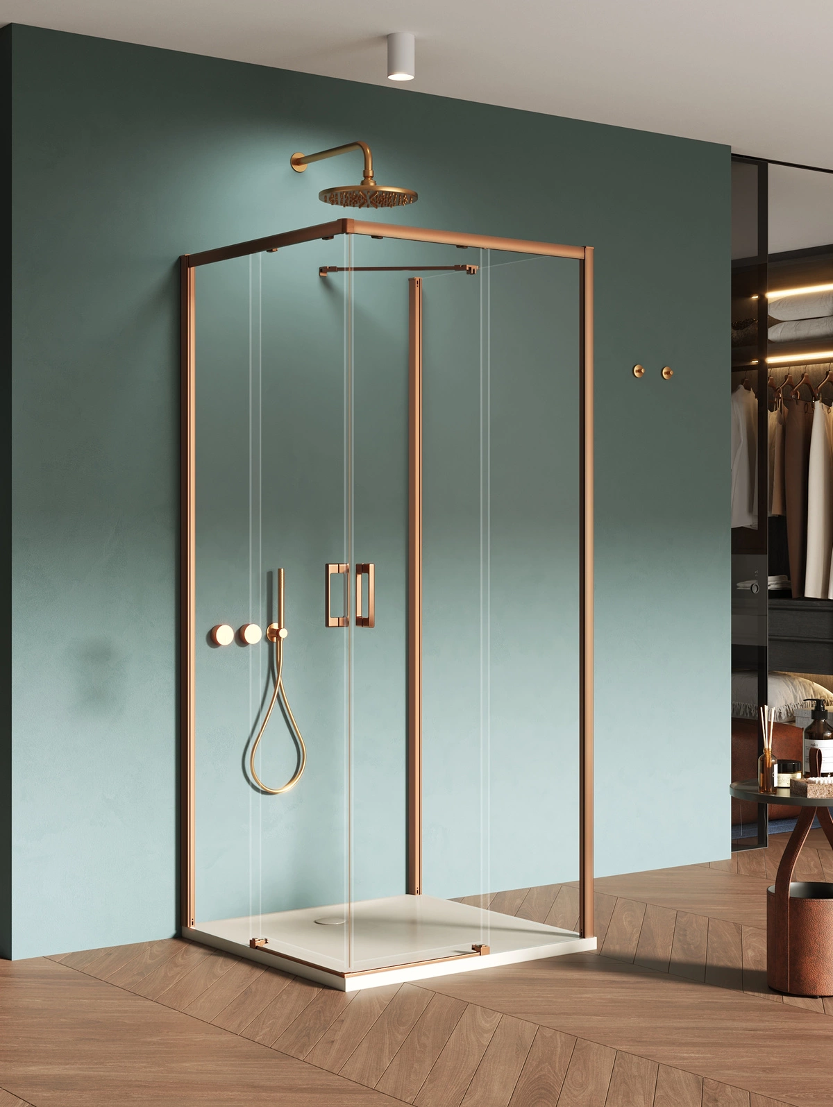NZ4 Kabina prysznicowa PRIME COPPER BRUSHED 2D kwadratowa przyścienna U 90x90x200 szkło czyste 6mm Active Shield 2.0