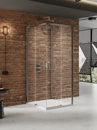 NZ4 Kabina prysznicowa PRIME GUNMETAL BRUSHED 2D prostokątna przyścienna L 80x100x200 szkło czyste 6mm Active Shield 2.0