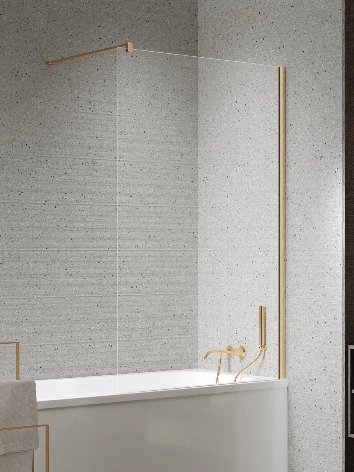 NZ4 Parawan nawannowy NESTA GOLD BRUSHED stały U 70x140 szkło czyste 8mm Active Shield 2.0 - wsp. równoległy