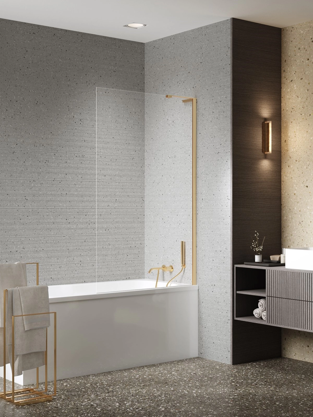 NZ4 Parawan nawannowy NESTA GOLD BRUSHED stały U 70x140 szkło czyste 8mm Active Shield 2.0 - WSPORNIK KĄTOWY