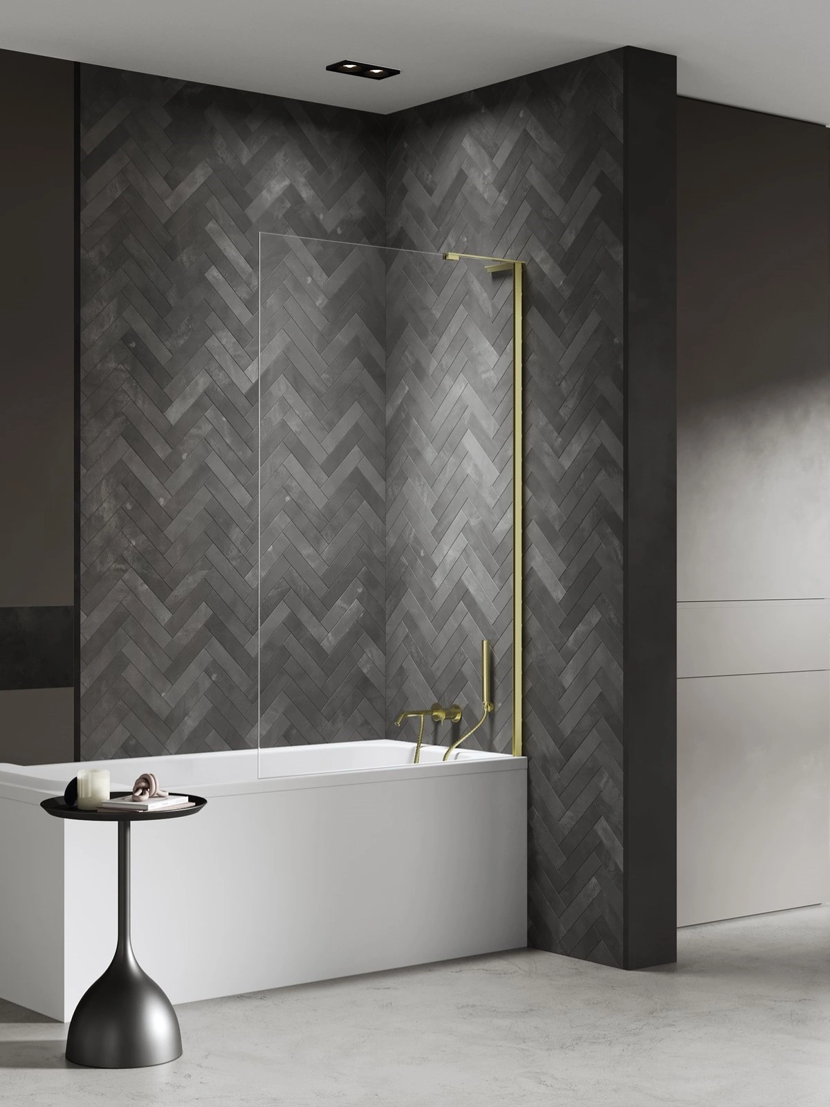 NZ4 Parawan nawannowy NESTA LIGHT GOLD stały U 100x140 szkło czyste 8mm Active Shield 2.0 - WSPORNIK KĄTOWY