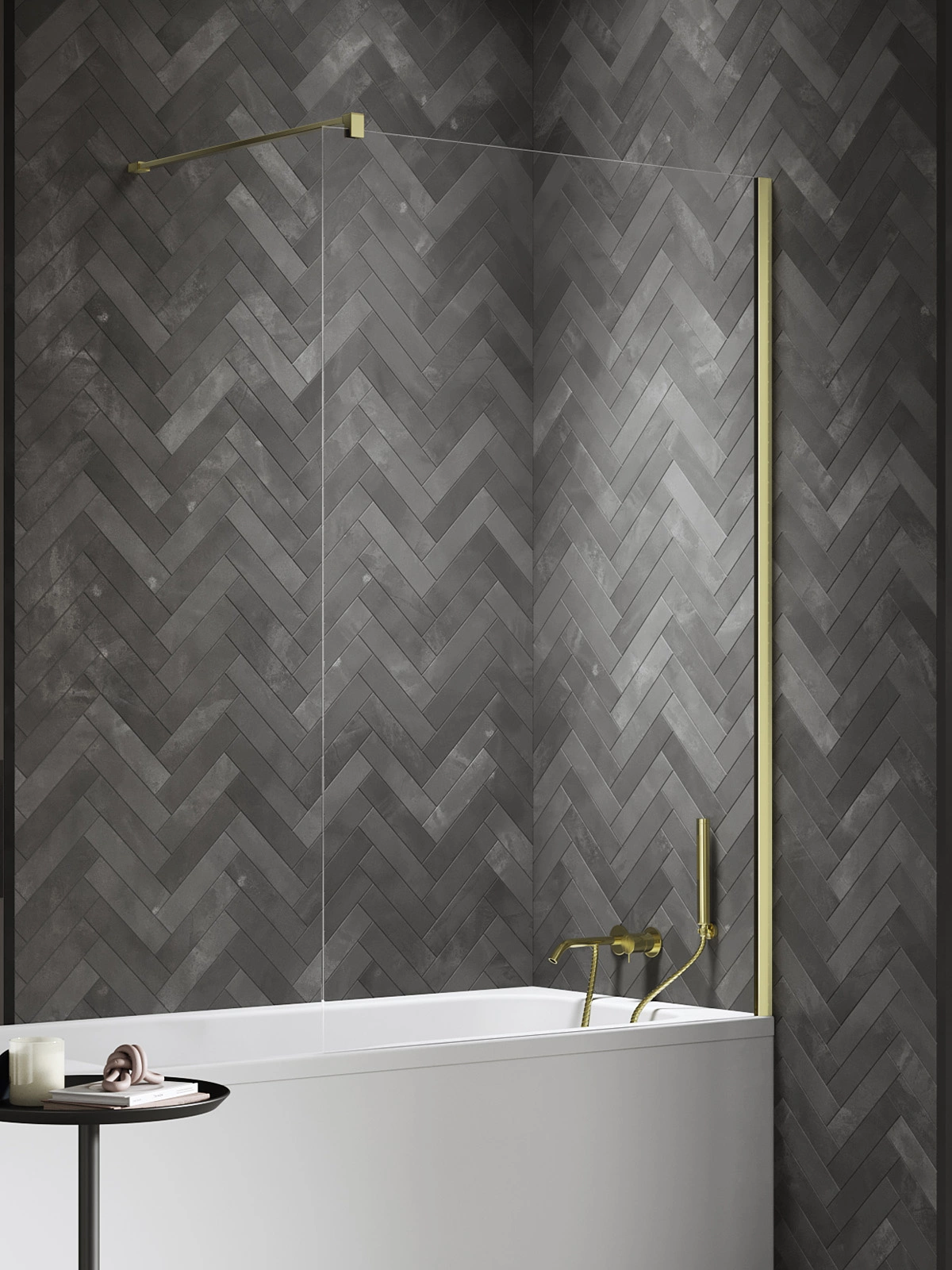 NZ4 Parawan nawannowy NESTA LIGHT GOLD stały U 60x140 szkło czyste 8mm Active Shield 2.0 - wsp. równoległy