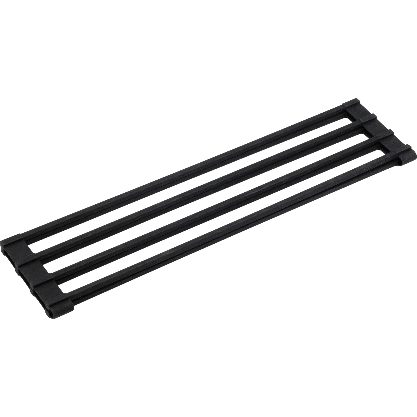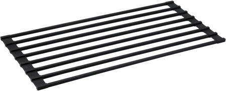 Praktyczny, składany ociekacz wykonany z elastycznego silikonu pomoże wygodnie zorganizować przestrzeń przy zlewie i utrzymać porządek na blacie. Dzięki formie maty możesz rozłożyć go bezpośrednio na komorze zlewozmywaka, a po użyciu szybko zwinąć i schować do szuflady, oszczędzając cenne miejsce w kuchni. Silikon barwiony w masie sprawia, że kolor jest trwały i nie ściera się podczas codziennego użytkowania, więc produkt przez długi czas wygląda jak nowy. Ociekacz idealnie sprawdzi się do odkładania umytych warzyw, owoców oraz naczyń, umożliwiając im swobodne ociekanie wody bez moczenia blatu. Utrzymanie maty w czystości jest bardzo proste – wystarczy opłukać ją w komorze zlewu. Ociekacz wykończony jest w czarnym matowym kolorze.