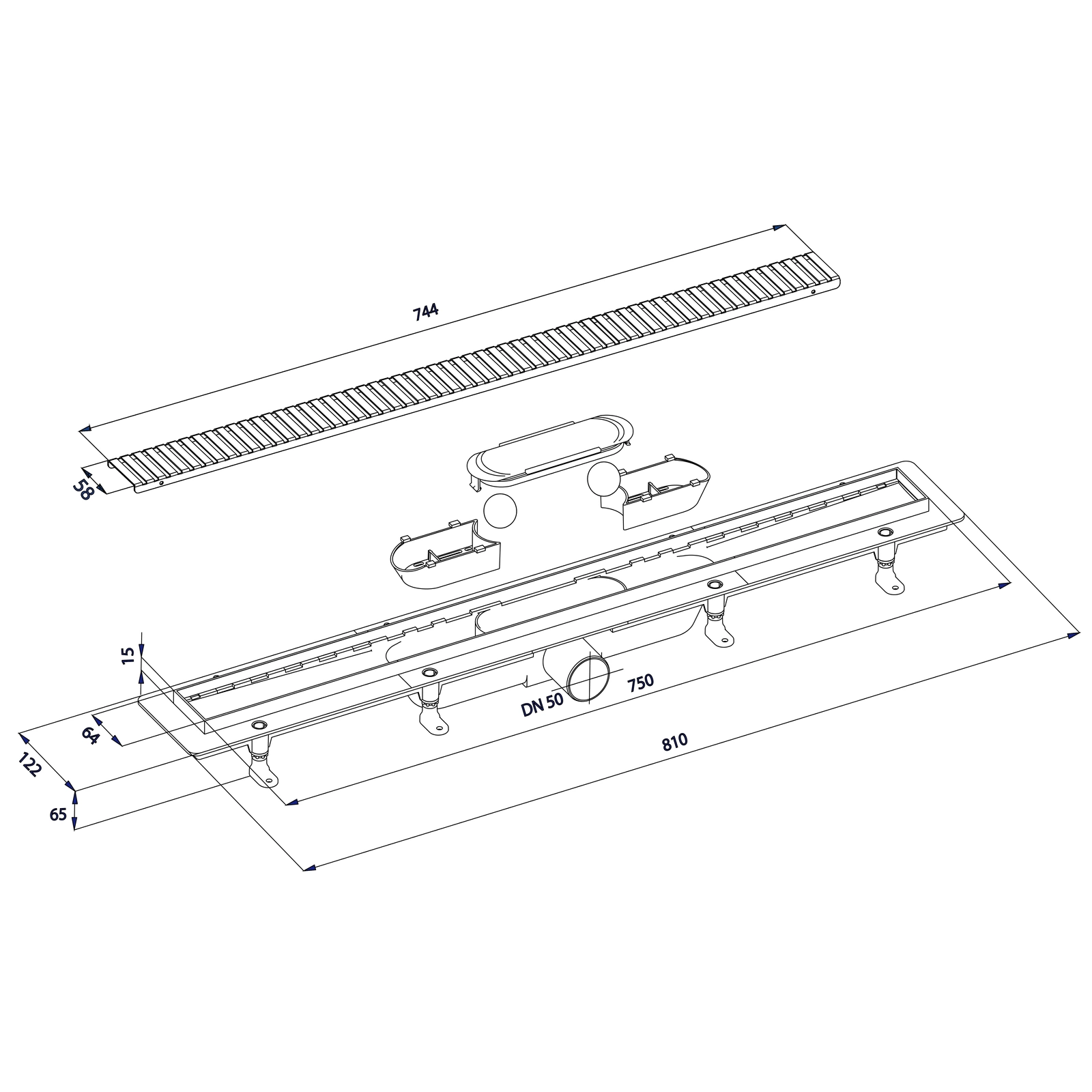 Odpływ liniowy z rusztem ze stali nierdzewnej, L-810, DN50
