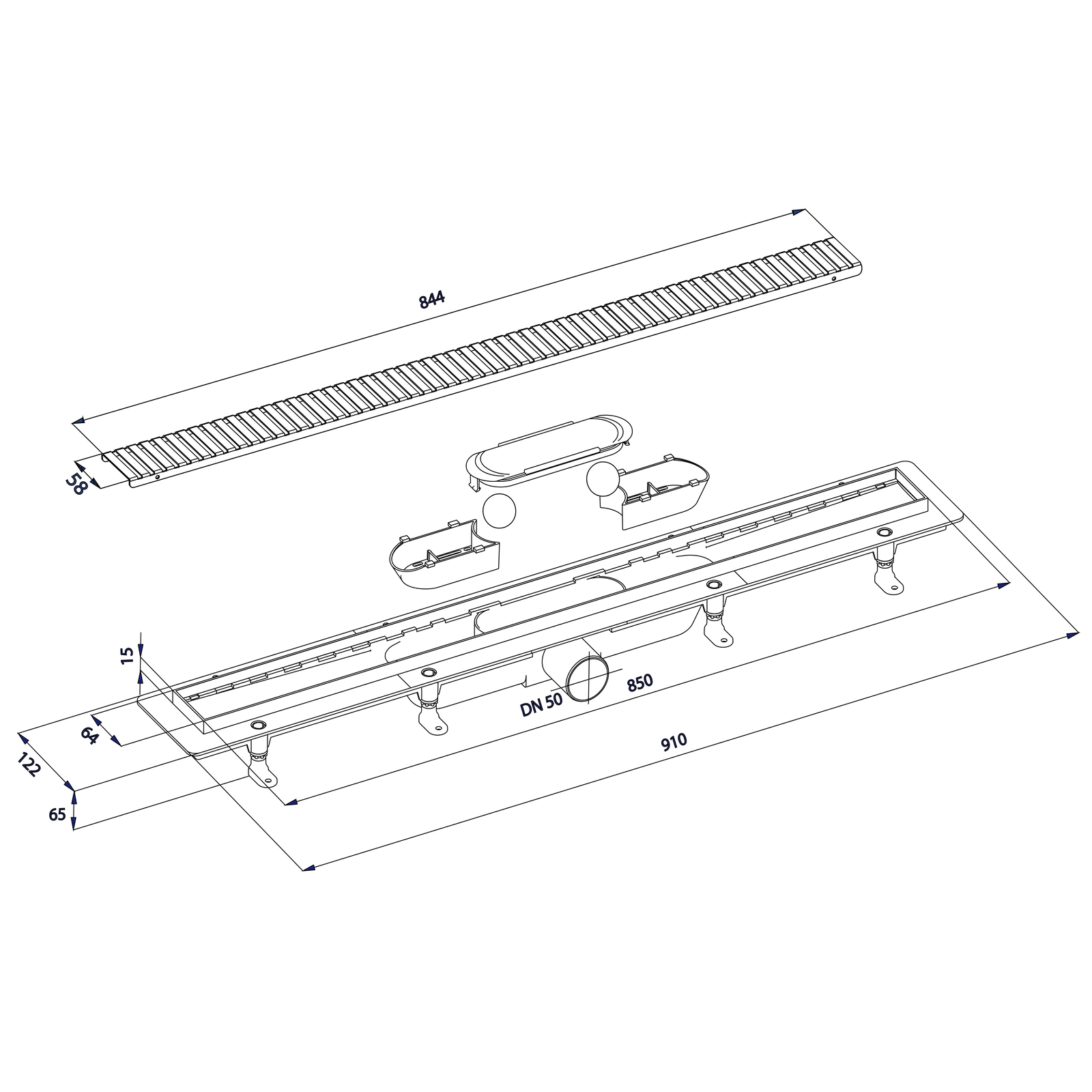 Odpływ liniowy z rusztem ze stali nierdzewnej, L-910, DN50