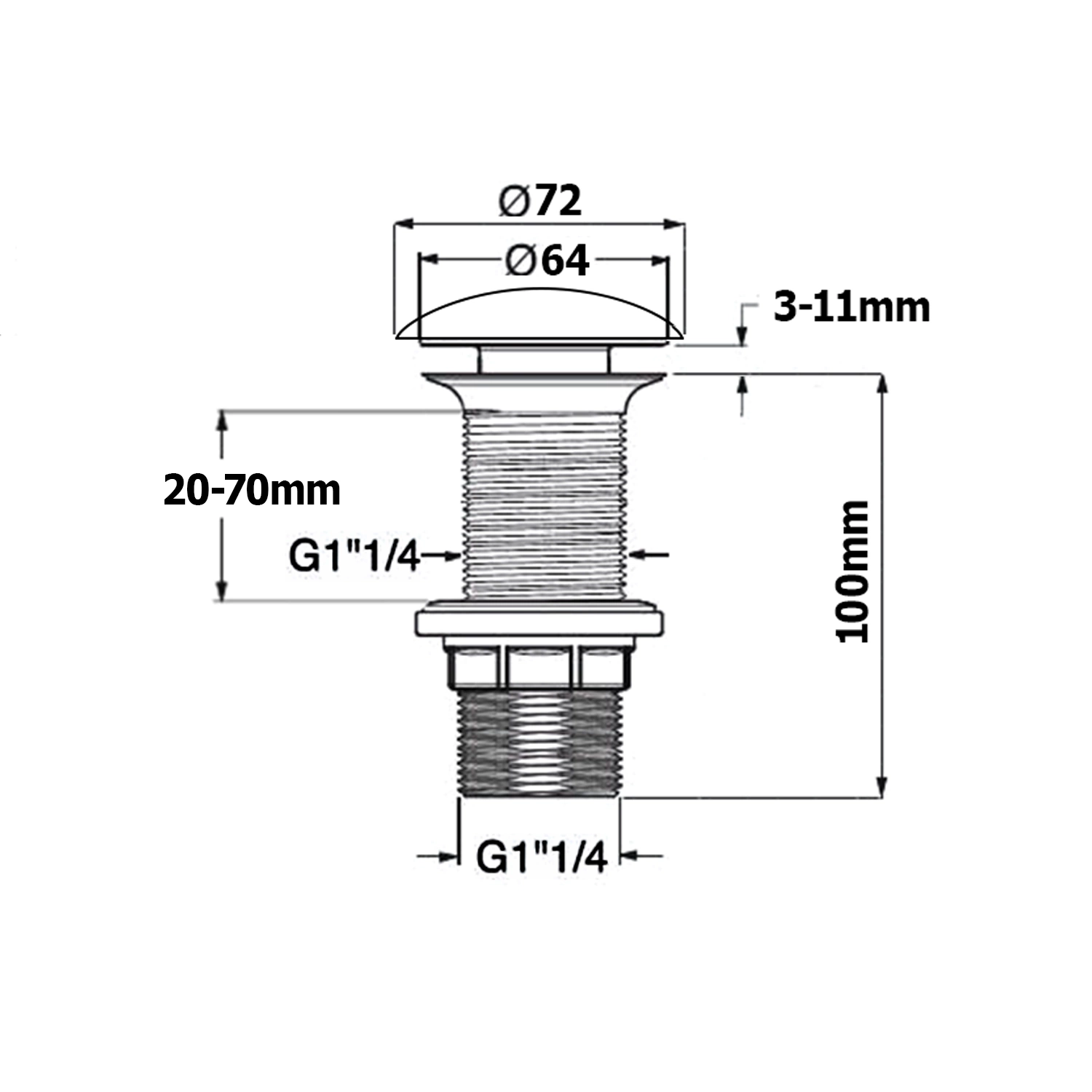 Odpływ umywalkowy 5/4", klik-klak, korek ceramiczny, 20-70mm, biały