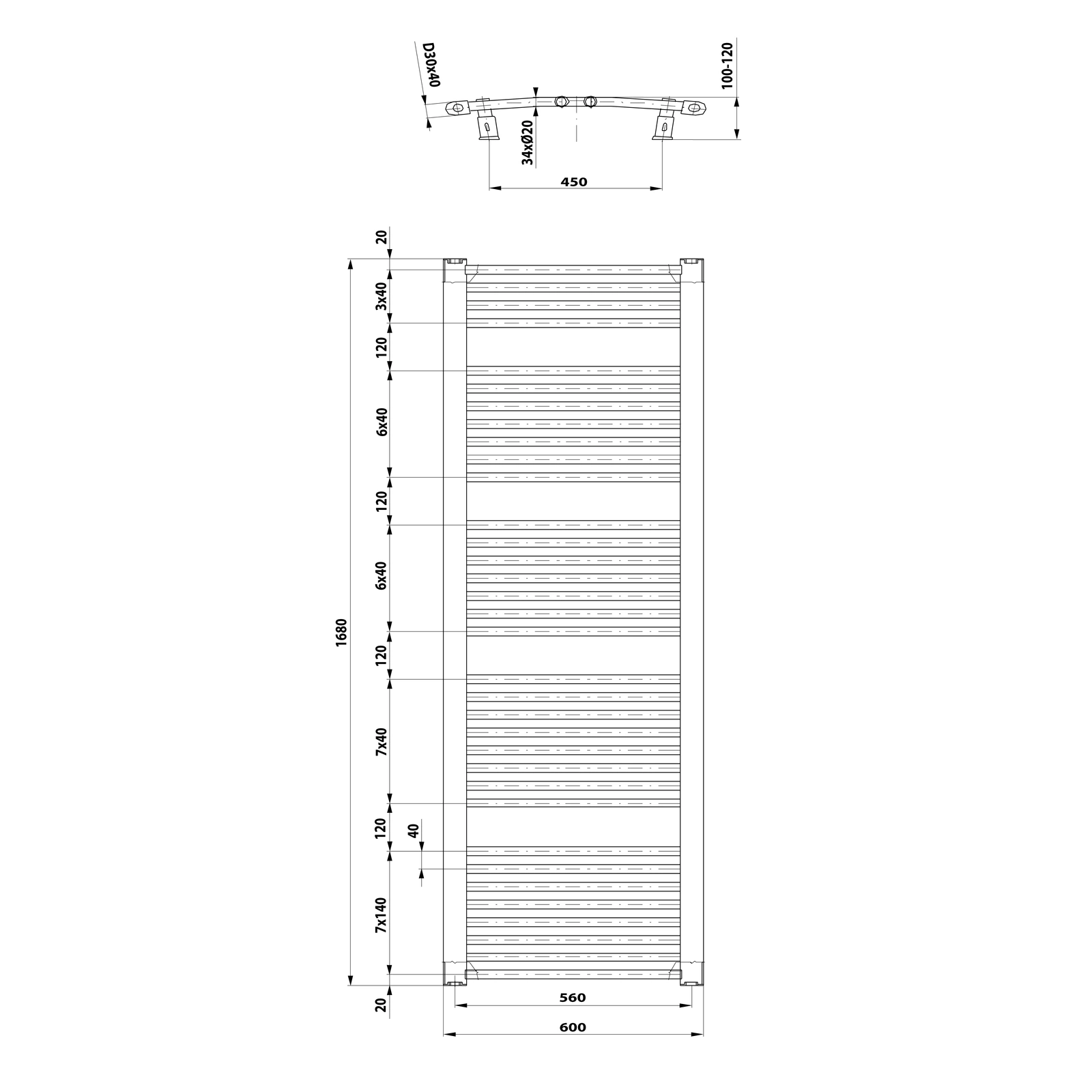 ORBIT grzejnik z podłączeniem bocznym 600x1680 mm, biały