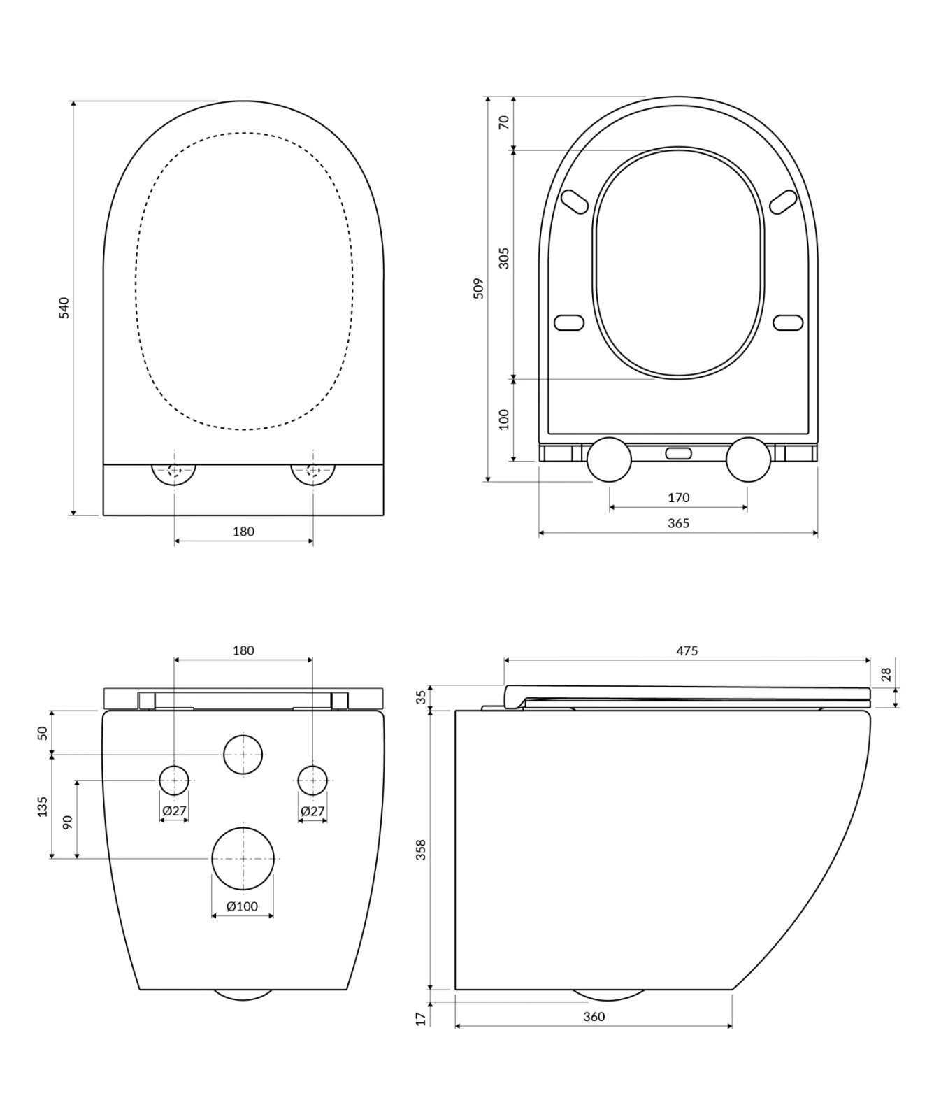 Miska toaletowa została wykonana z wysokiej jakości ceramiki. Biały połysk to klasyczne wykończenie o naturalnie obijającej światło, błyszczącej powierzchni.