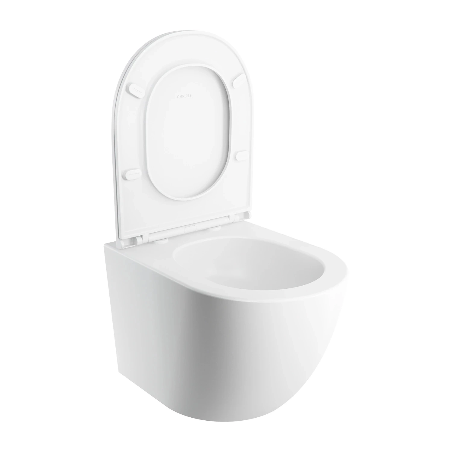 Bezkołnierzowa miska toaletowa OMNIRES OTTAWA wyróżnia się pełnym, organicznym kształtem. Delikatnie zaokrąglona bryła, przełamana precyzyjną linią deski wolnoopadającej, tworzy z nią idealnie dopasowaną, harmonijną całość. Niewielkie, dyskretne rozety o minimalistycznej formie dodatkowo ułatwiają czyszczenie w obrębie mocowań deski.