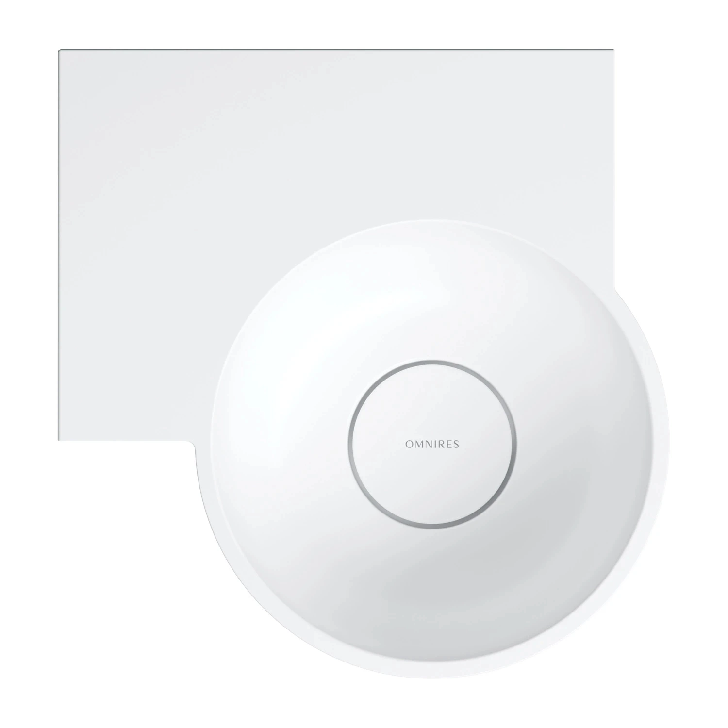 Umywalka z kolekcji OMNIRES OVO charakteryzuje się minimalistyczną, wyrazistą formą o doskonałych proporcjach. Powstały z zabawy geometrią kształt tworzą dwa przeciwległe półokręgi umywalki, połączone z prostokątną, funkcjonalną półką – idealnym miejscem do montażu baterii, a także do odstawienia kosmetyków czy innych niezbędnych akcesoriów. Harmonijnie wyprofilowane ścianki zostały wykończone płaskim, podkreślającym formę rantem, a idealnie dopasowana maskownica odpływu gwarantuje najwyższą estetykę. Od spodu umywalki zaprojektowano dyskretne, fabrycznie podcienione punkty, które wskazują miejsca na wykonanie otworów pod baterię lub dozownik, umożliwiając elastyczne dopasowanie armatury do indywidualnych potrzeb.