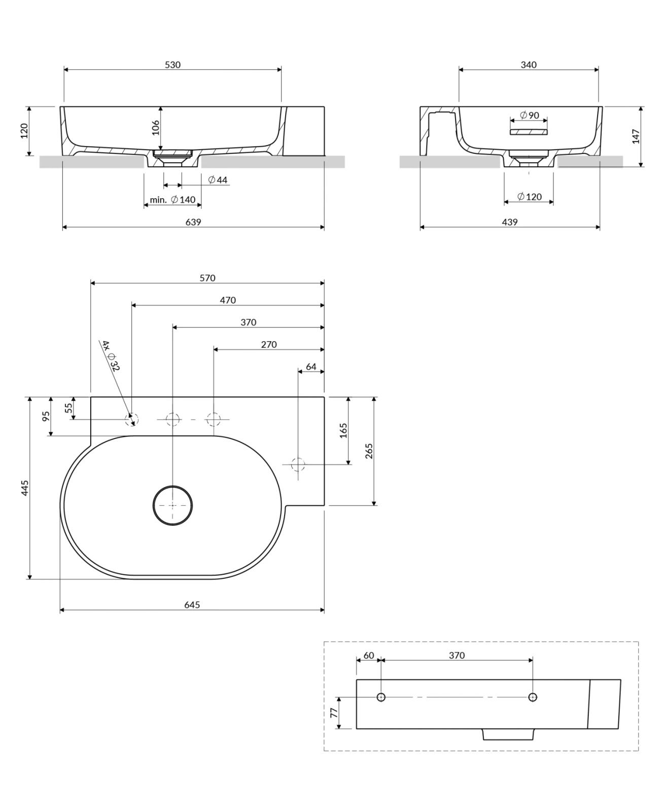 • w przypadku montażu nablatowego wymagane jest wycięcie okręgu w blacie o średnicy 140 mm