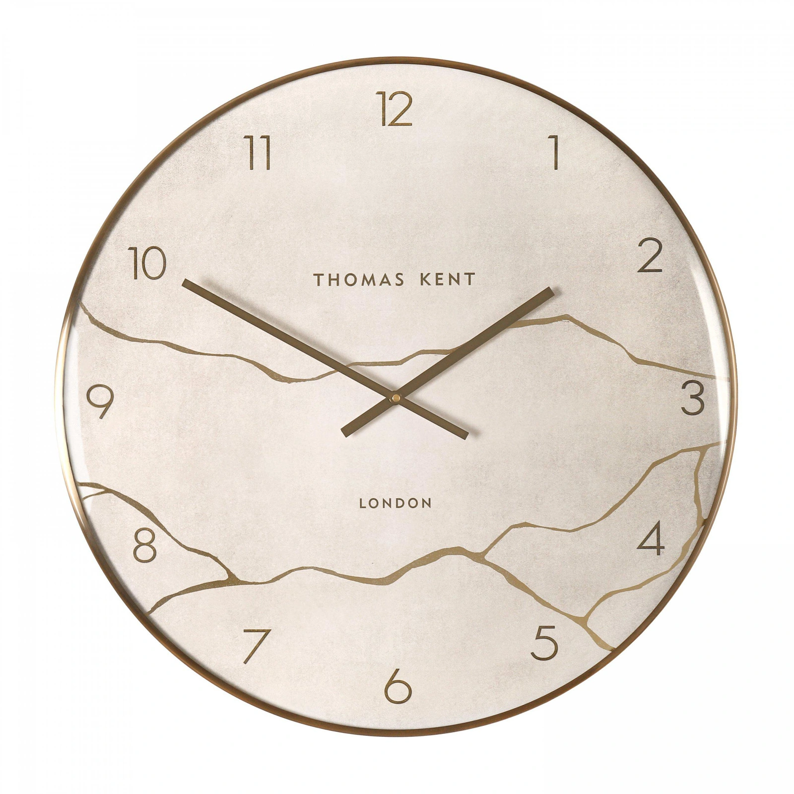 Inspired by Kintsugi, the Japanese art of repairing broken ceramics. Kintsugi invites gold or silver bonds to transform cracks and flaws into stunning, unique features that inspire us to see beauty in imperfection. Set on a textured stone effect dial, unique gold veining runs across the oversized clock face. A delicate bronze rim with matching hands completes the glamourous clock design.