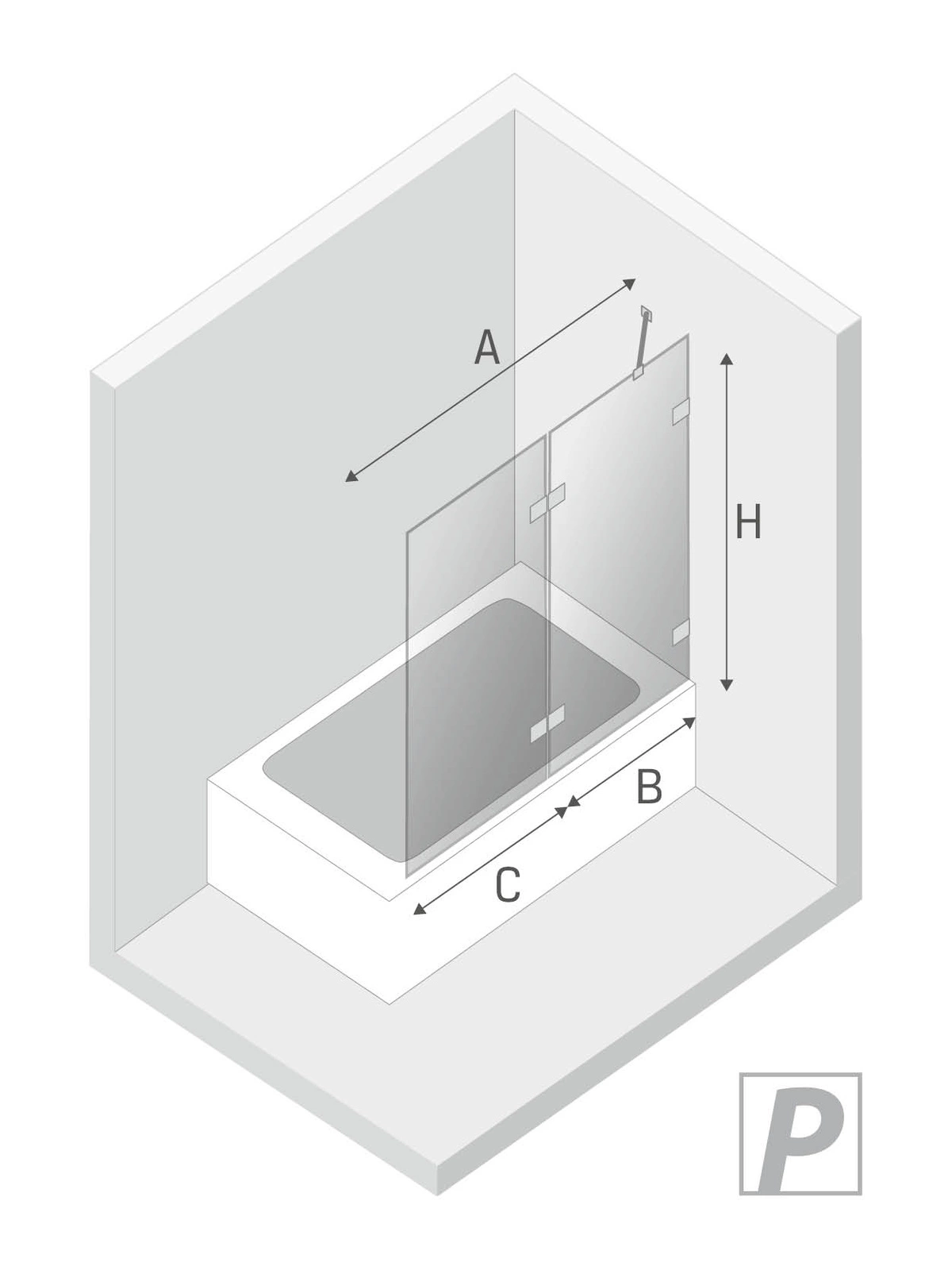 Parawan kąpielowy 2-elementowy, detale w złocie o wysokim połysku, bezpieczne hartowane szkło 6 mm, z powłoką Active Shield.