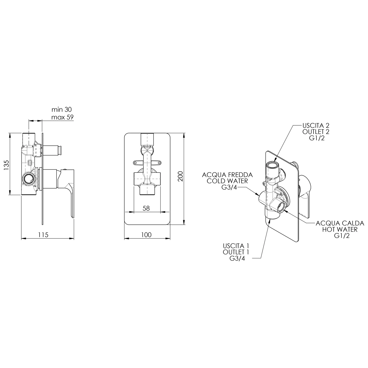 PAX zestaw natryskowy podtynkowy z baterią podtynkową, 2 wyjścia, chrom