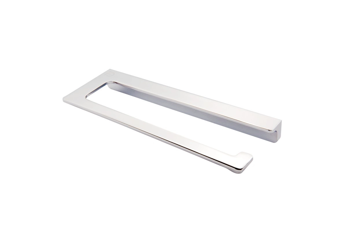 Uchwyt na papier toaletowy o prostej formie i chromowanym wykończeniu doskonale wpisze się w industrialną stylistykę łazienki. Należy do akcesoriów charakteryzujących się minimalistycznym kształtem, budowanym na planie kwadratu i prostokąta, co sprawia, że kompozycja staje się nietuzinkowa, nabiera wyjątkowego, indywidualnego charakteru. Część uchwytu, na której umieścimy rolkę, posiada ogranicznik zapobiegający zsuwaniu się papieru. Proste, ale praktyczne rozwiązanie.