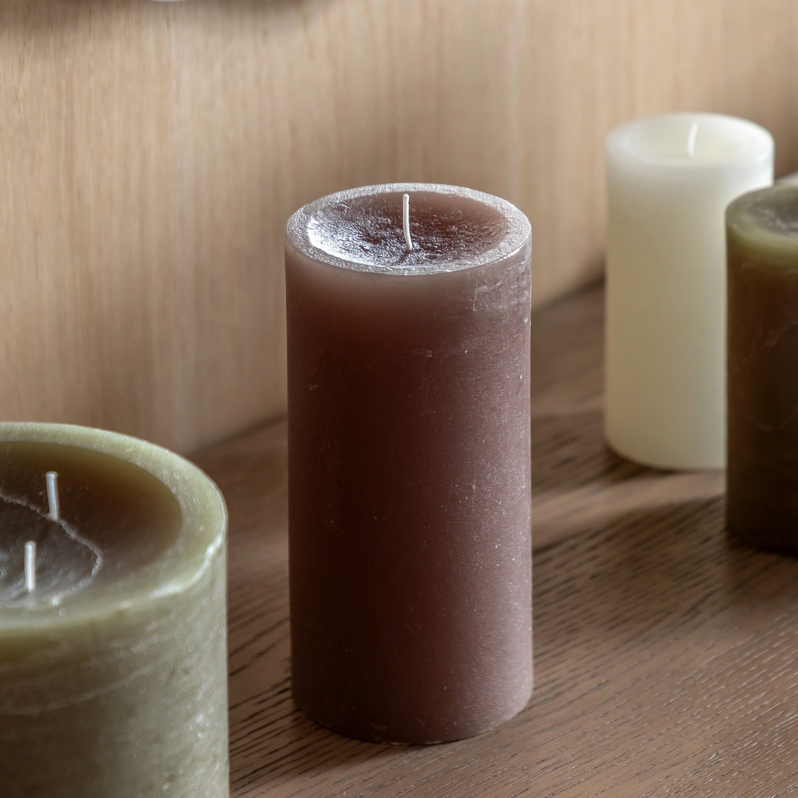 Classic set of 2 pillar candles in a rustic taupe colour, perfect for use on their own or as an addition to a candlestick or lantern.