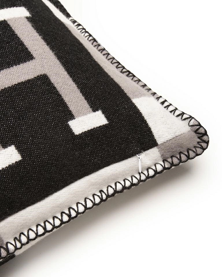 Geometryczny wzór z literą "H" oraz ozdobne, kontrastowe czarno-szare obszycie dodają charakteru i stylu.