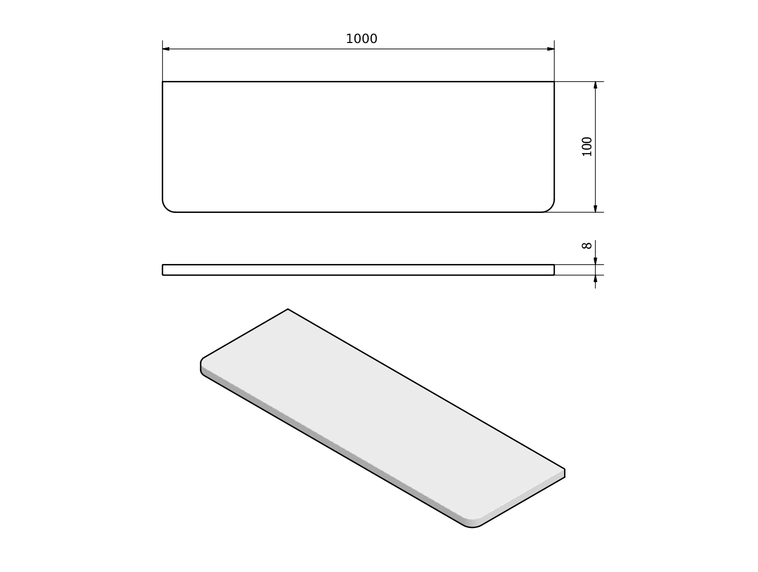 X-ROUND półka szklana 1000mm, chrom/szkło czyste