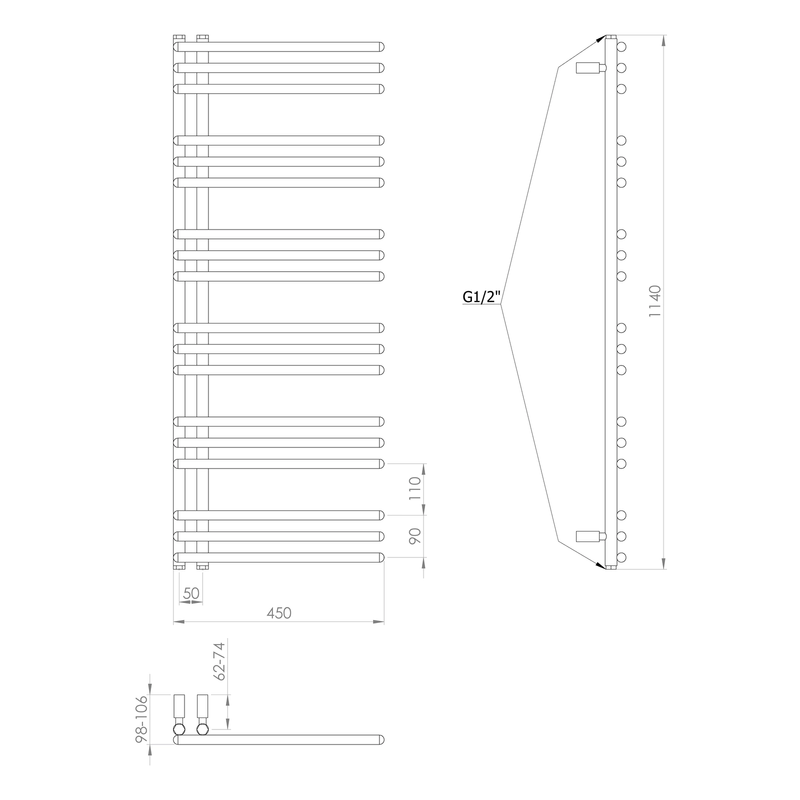 Podłączenie kombinowane umożliwia zasilanie grzejnika przez instalację centralnego ogrzewania, jak i wykorzystanie elektrycznej grzałki do samodzielnego ogrzewania poza sezonem grzewczym. Zalecamy zastosowanie grzałki o takiej samej lub podobnej mocy w zależności od specyfikacji grzejnika.