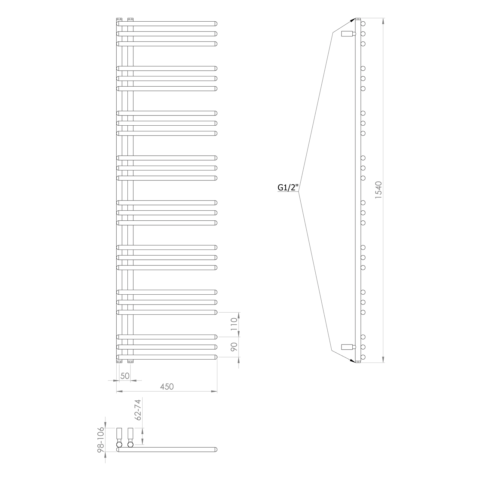 POSEIDON grzejnik łazienkowy 450x1540mm, czarny mat