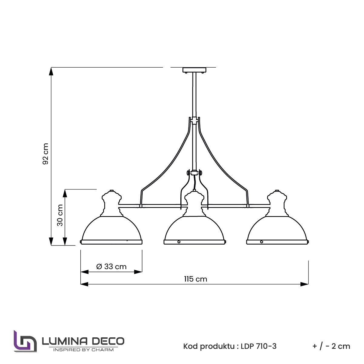POTRÓJNA LAMPA WISZĄCA INDUSTRIALNA CZARNO-MOSIĘŻNA ETTORE