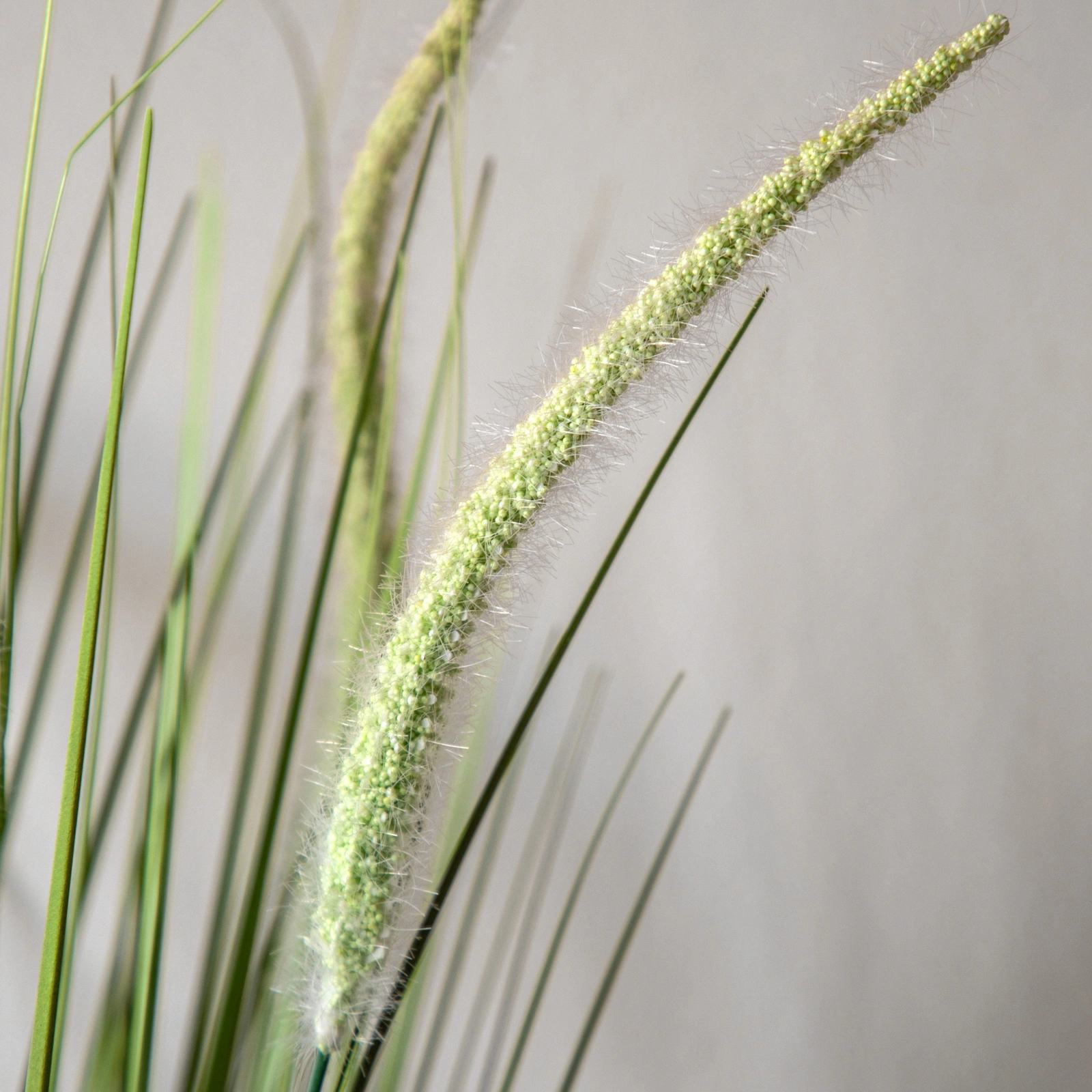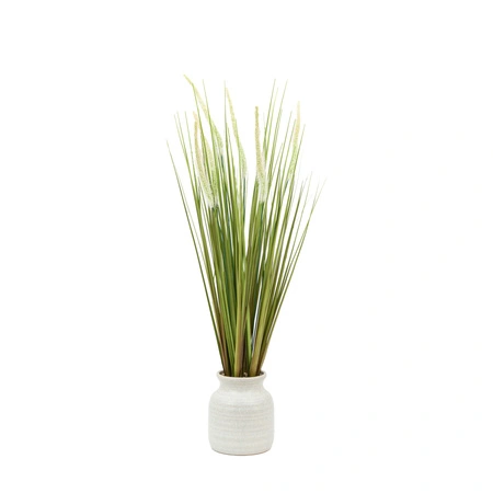 Soft feathered meadow flowers, architectural grass stems and a simple glazed pot make this compact faux grass the perfect addition to any room. Adding a splash of greenery with minimal hassle wherever you place it.