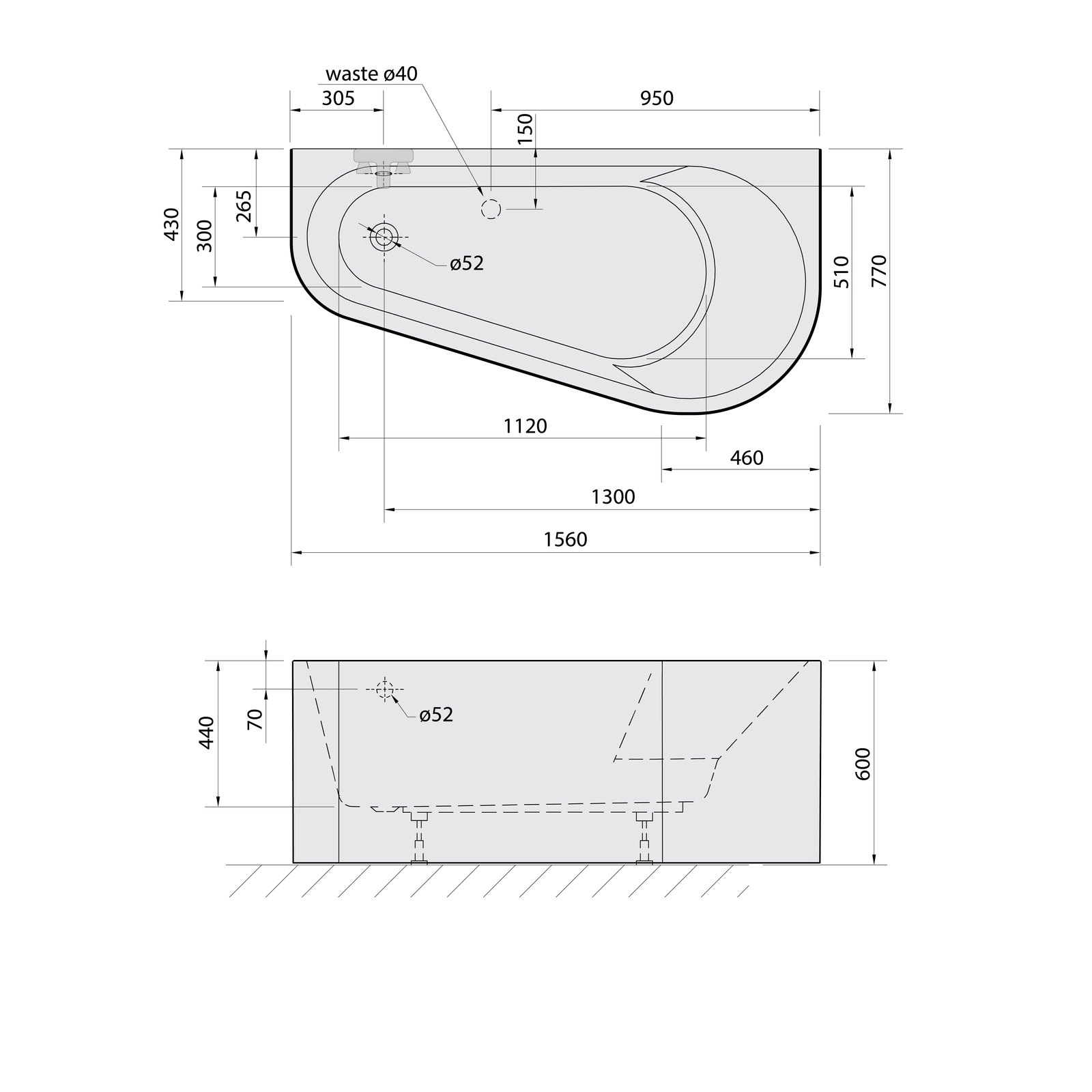 | Średnica odpływu | 52 mm |