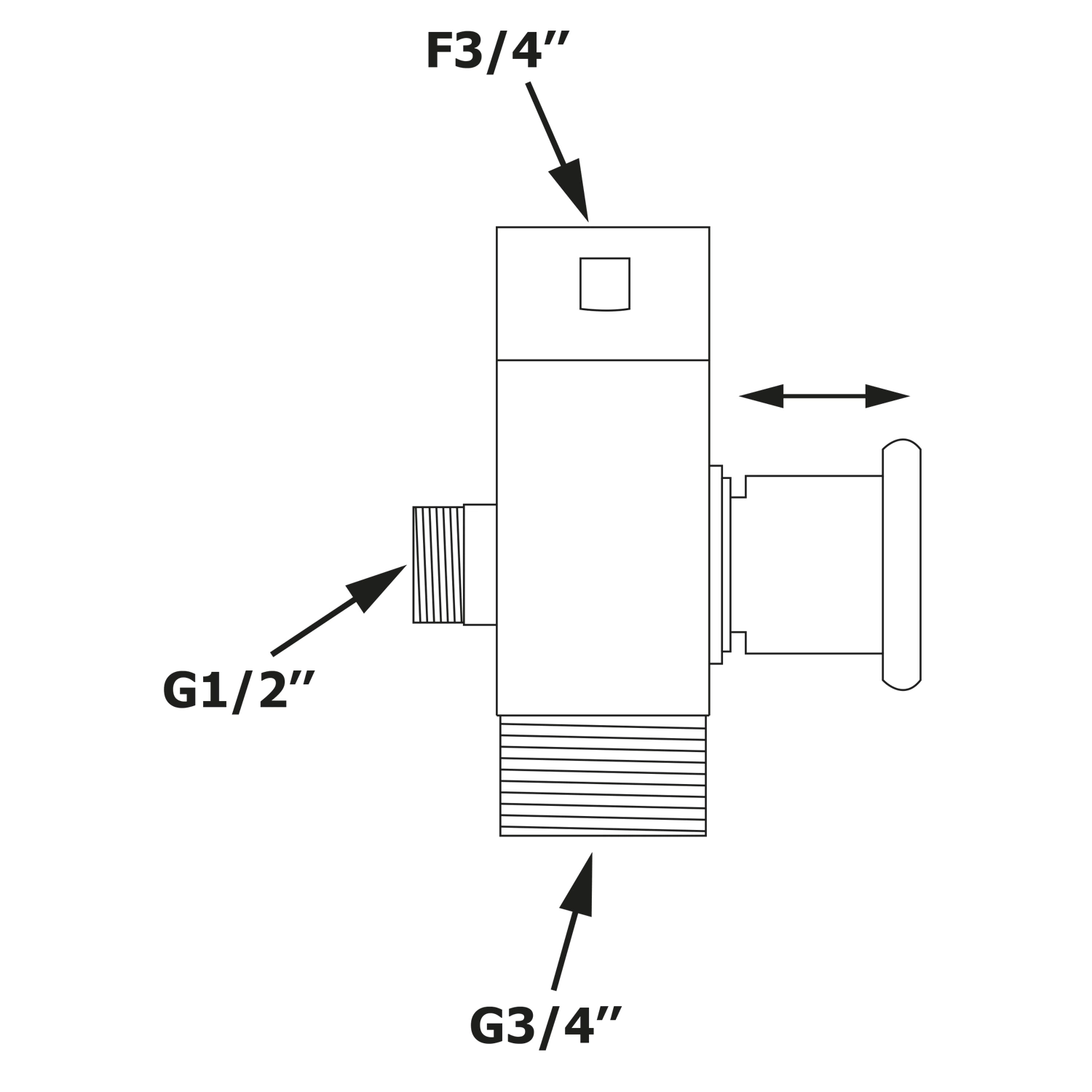 Przełącznik baterii prysznicowej F3/4"-M1/2"xM3/4", chrom