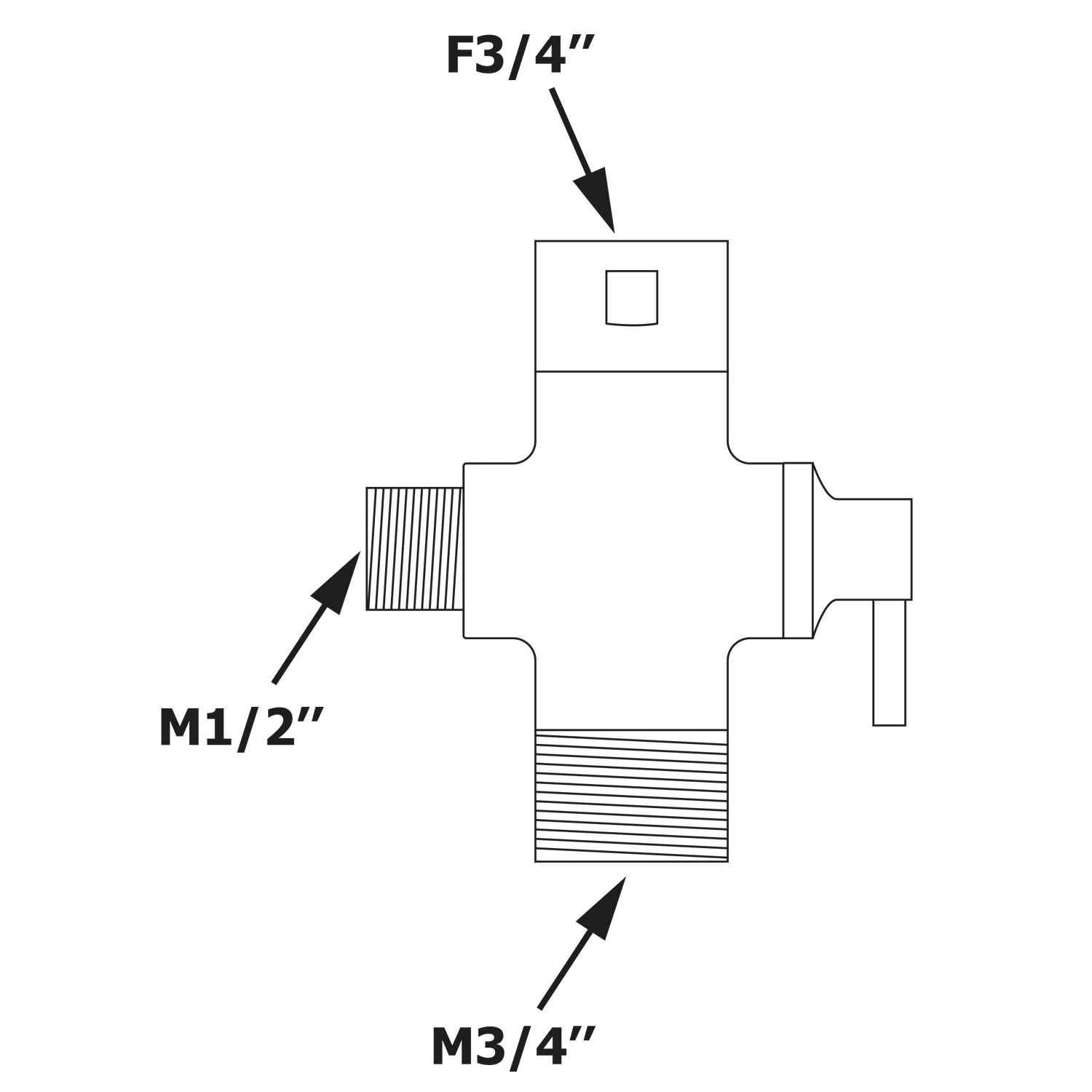 Przełącznik kolumny prysznicowej F3/4"-M1/2 »xM3/4«, chrom