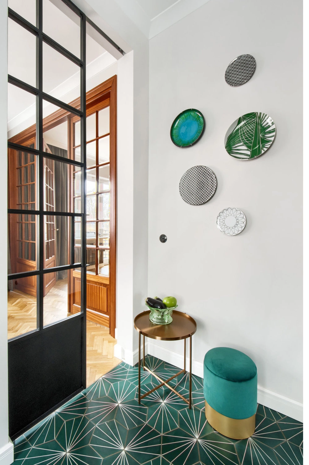 • Jest ono tapicerowane miękkim welurem w głębokim odcieniu mięty.