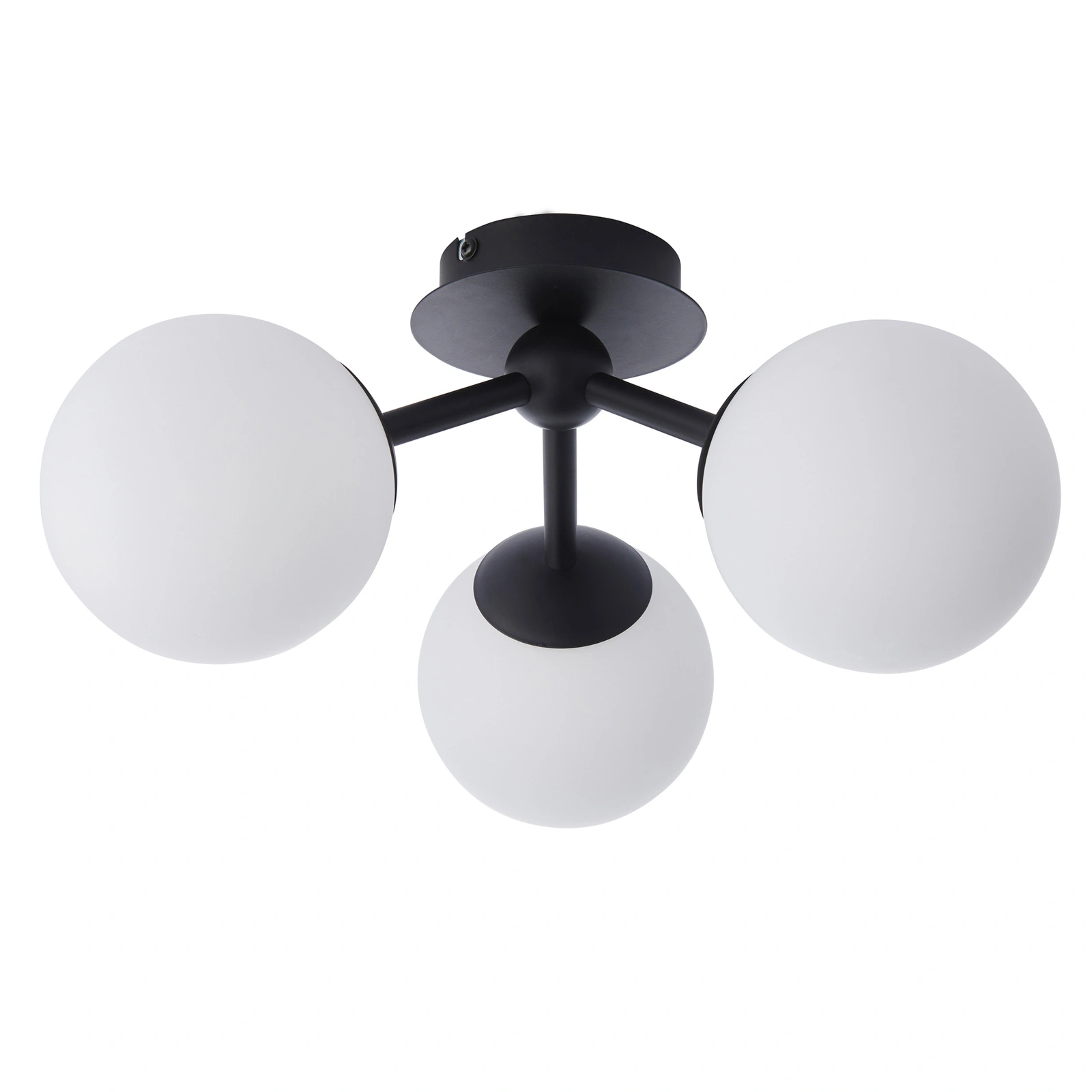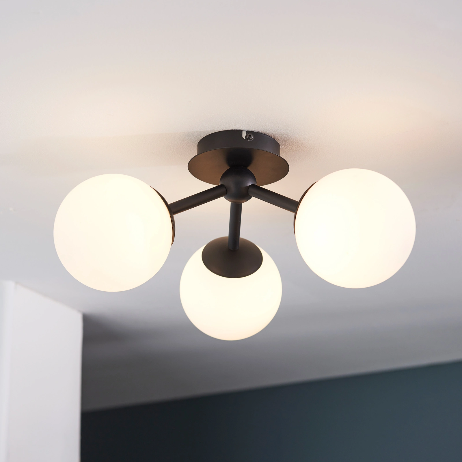 Stylish contemporary semi flush light combining matt black steel with matt white glass. Perfect design for low ceilings and suitable for bathrooms due to its IP rating. This product is dimmable. Other family items available.