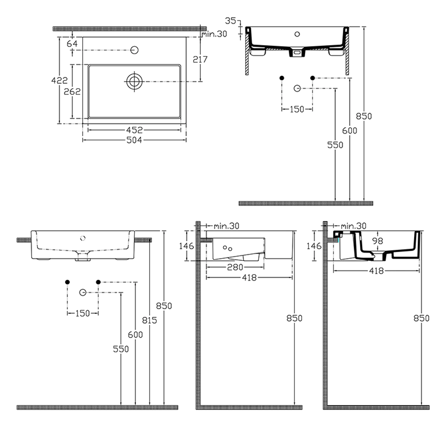 | Typ umywalki | Umywalka wpuszczana w blat |