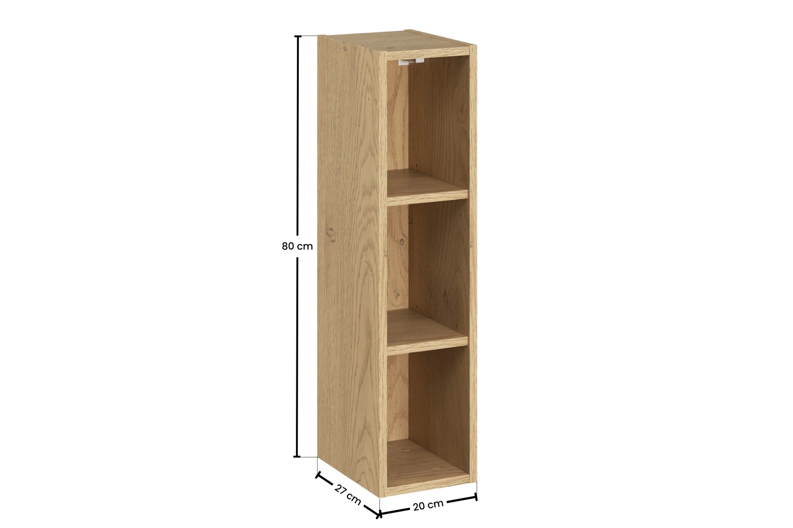 Ten regał górny o szerokości 20 cm to subtelny akcent, który wprowadza naturalne ciepło i ład do minimalistycznych wnętrz. Mebel został starannie wykończony w dekorze Dąb Cremona, wiernie odwzorowującym piękno naturalnego drewna i tworzącym przytulną atmosferę. Konstrukcja z trwałej płyty laminowanej zapewnia solidność oraz długotrwałe użytkowanie. Dzięki pełnej kompatybilności z kolekcją Dalia Cashmere możesz swobodnie kreować przestrzeń, dodając jej wyrazistego charakteru i spójnego stylu.